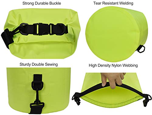 - Easy Operation and Cleaning: Just put your gear in bag, grab top woven tape and roll down tightly 3 to 5 times and then plug buckle to complete seal, whole process is very quick. Dry sack is easy to wipe clean due to its smooth surface.