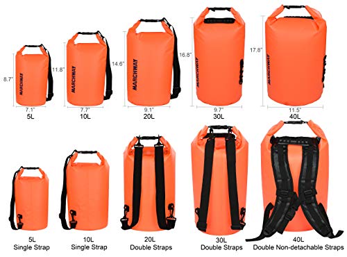 MARCHWAY Floating Waterproof Dry Bag 5L/10L/20L/30L/40L, Roll Top Sack Keeps Gear Dry for Kayaking, Rafting, Boating, Swimming, Camping, Hiking, Beach, Fishing